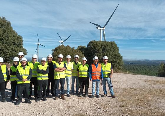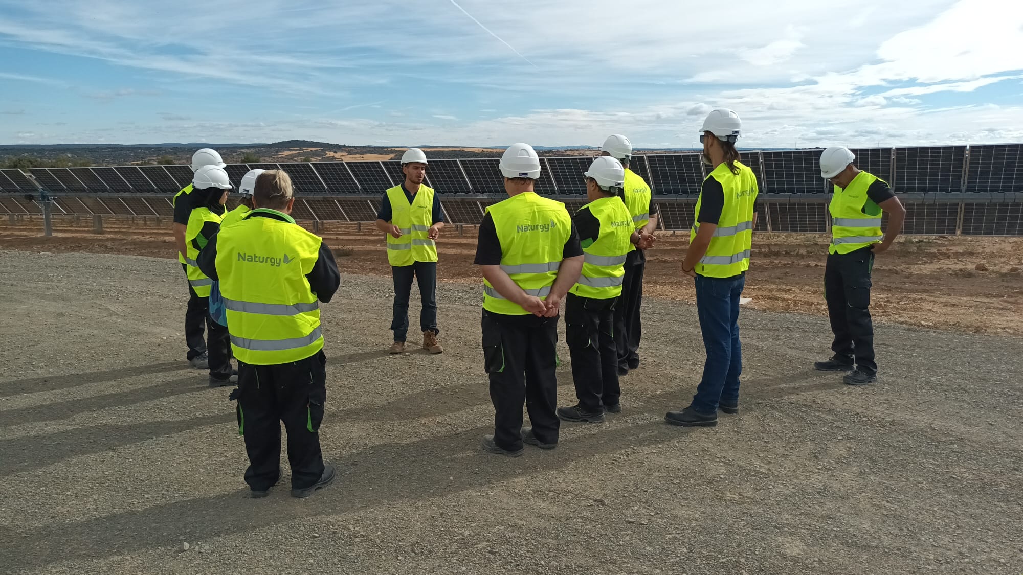 Alumnos del programa de Recualificación profesional (RECUAL) Cifuentes Sostenible, que realizan el curso de ‘Operaciones básicas en el montaje y mantenimiento de instalaciones de energías renovables’ en la localidad de Cifuentes (Guadalajara), han visitado el parque eólico y la planta fotovoltaica que Naturgy tiene en operación en el término municipal de la vecina localidad de Canredondo.
