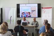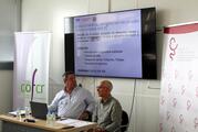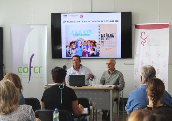 El presidente de la Asociación Salud Mental Ciudad Real, Jesús Sánchez Vizcaíno, y el psicólogo, Juan Domingo Martín, fueron los encargados de presentar a esta asociación que trabaja para conseguir la plena integración en la sociedad de las personas afectadas por una enfermedad mental severa.