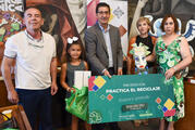 También con estos dos premios ha vuelto hoy a su escuela Nayara López López, del CRA Valle de Alcudia, en Hijonosas. Ella, que se encuentra en segundo de Primaria, ha propuesto una “Careta de Carnaval” como manualidad sostenible.