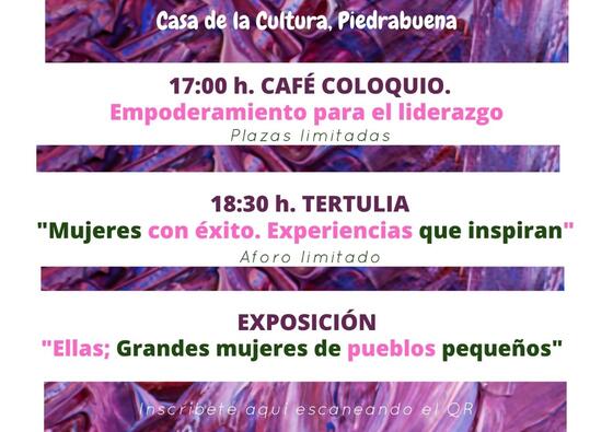 Posteriormente, de 18.30 a 20.00 horas se desarrollará la Tertulia ‘Mujeres con éxito. Experiencias que inspiran’ en la que participará la consejera de Igualdad y portavoz del Gobierno regional, Blanca Fernández, junto a otras mujeres de la comarca que destacan en sus facetas profesionales, han roto estereotipos y han sido capaces de derribar los muros invisibles que impiden que las mujeres rurales se desarrollen.