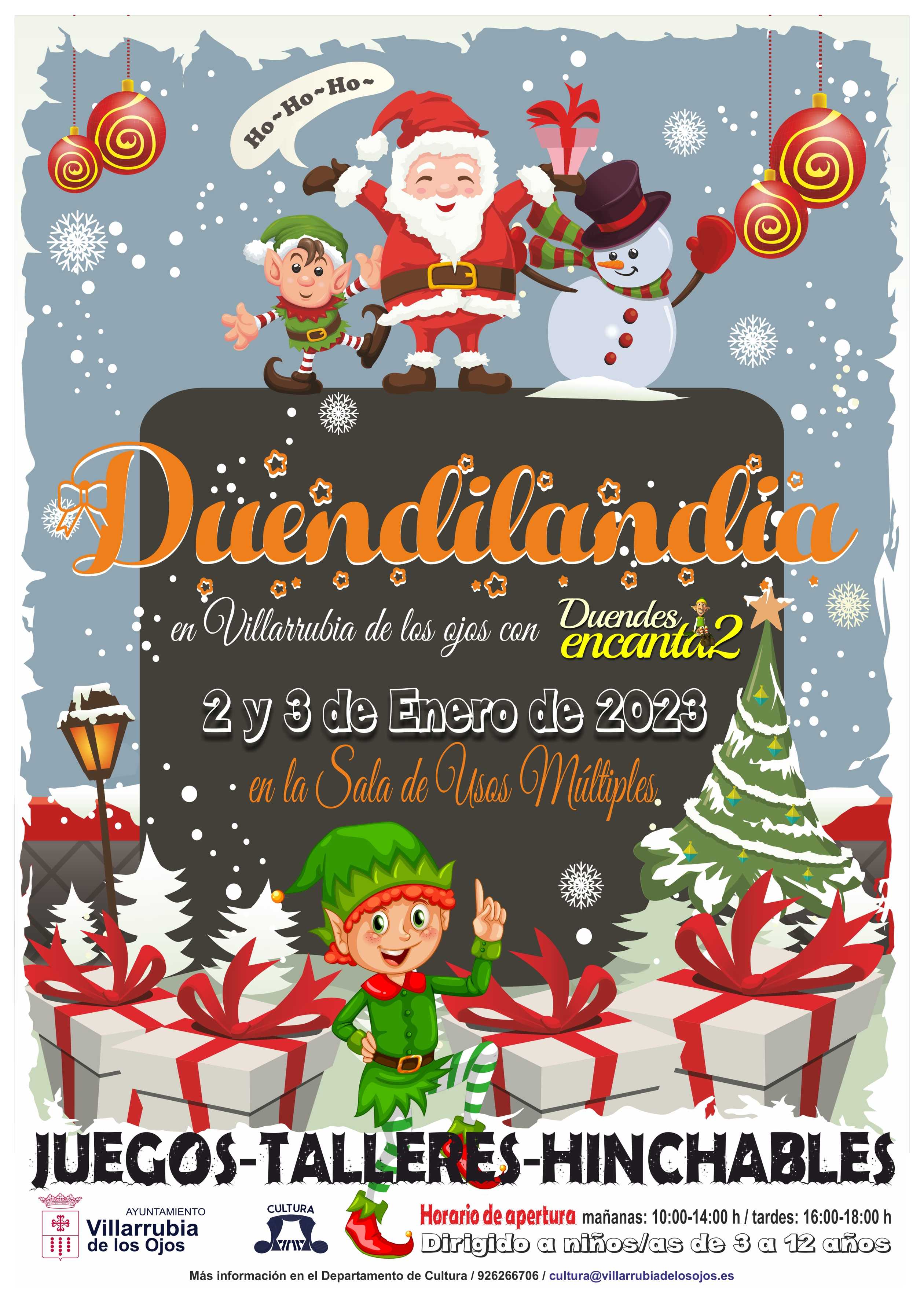 La Concejalía de Cultura pondrá en marcha otro año más Duendilandia en la Sala de Usos Múltiples, en horario de 10 a 14 horas y de 16 a 18 horas, para la población infantil con edades comprendidas entre los 3 y los 12 años, que podrán disfrutar de talleres, juegos, bailes e hinchables. La entrada es gratuita y no se requerirá inscripción previa.