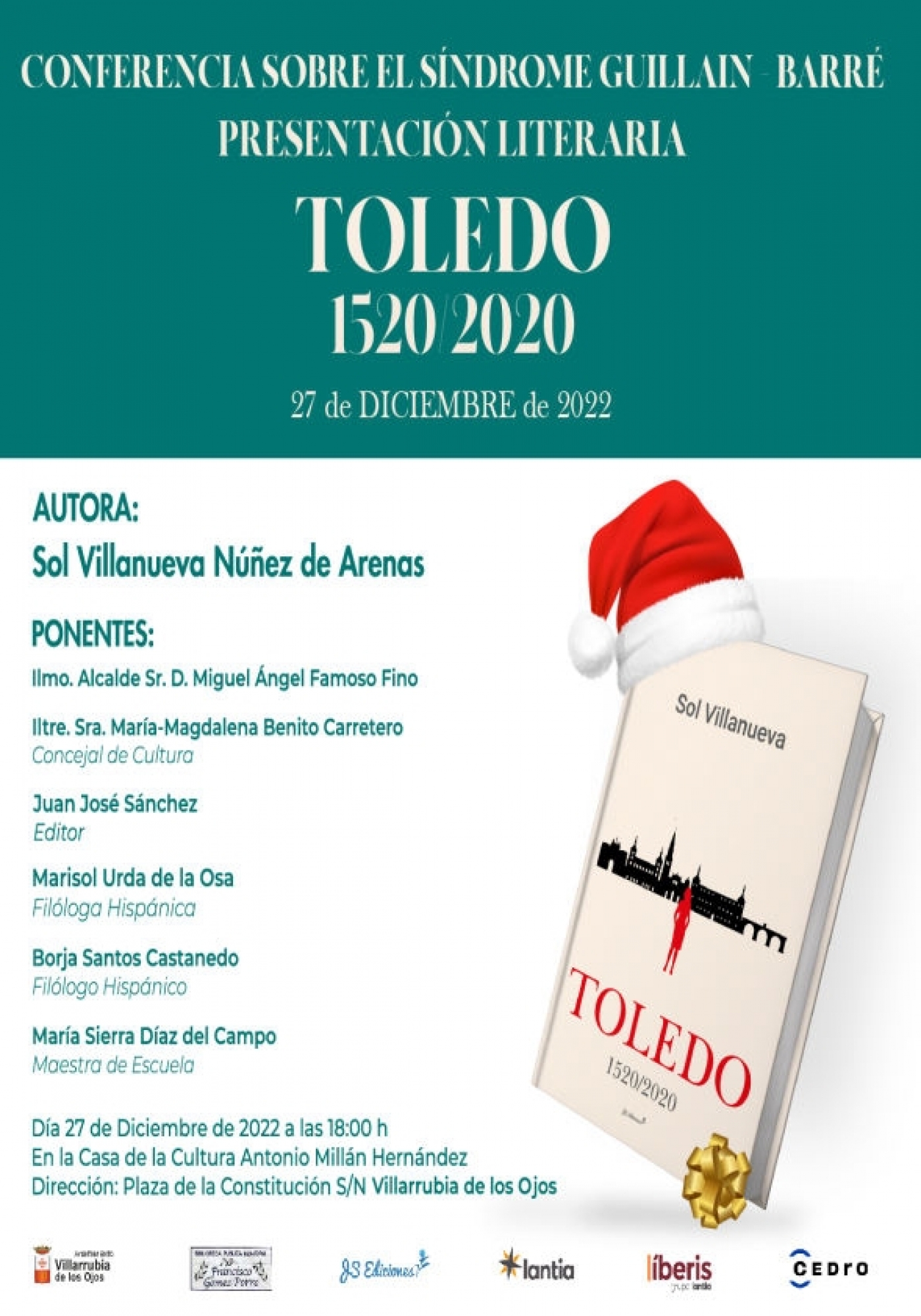 El 27 de diciembre, la Casa de Cultura “Antonio Millán Hernández” acogerá a las 18 horas, la conferencia sobre el Síndrome Guillain Barré, y presentación literaria del libro de Sol Villanueva Núñez de Arenas, “Toledo”.