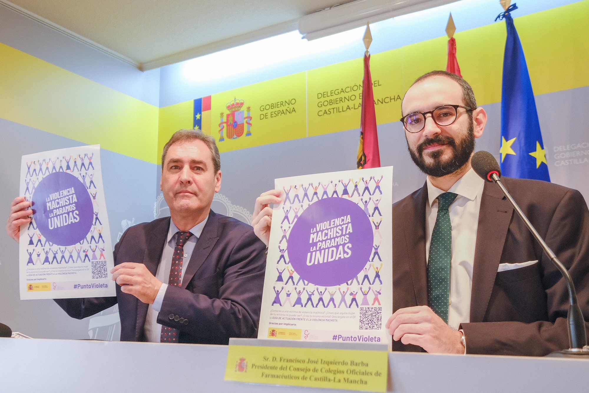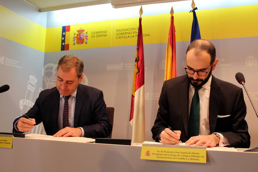 Lo ha hecho tras firmar el Protocolo General de Actuación con el presidente del Consejo de Colegios de Farmacéuticos de Castilla-La Mancha, Francisco Izquierdo, que va a tener, como primera acción, la actuación de las farmacias de la región como Puntos Violeta, y que se ha rubricado en un acto que ha tenido lugar en la Delegación del Gobierno de España en Castilla-La Mancha.