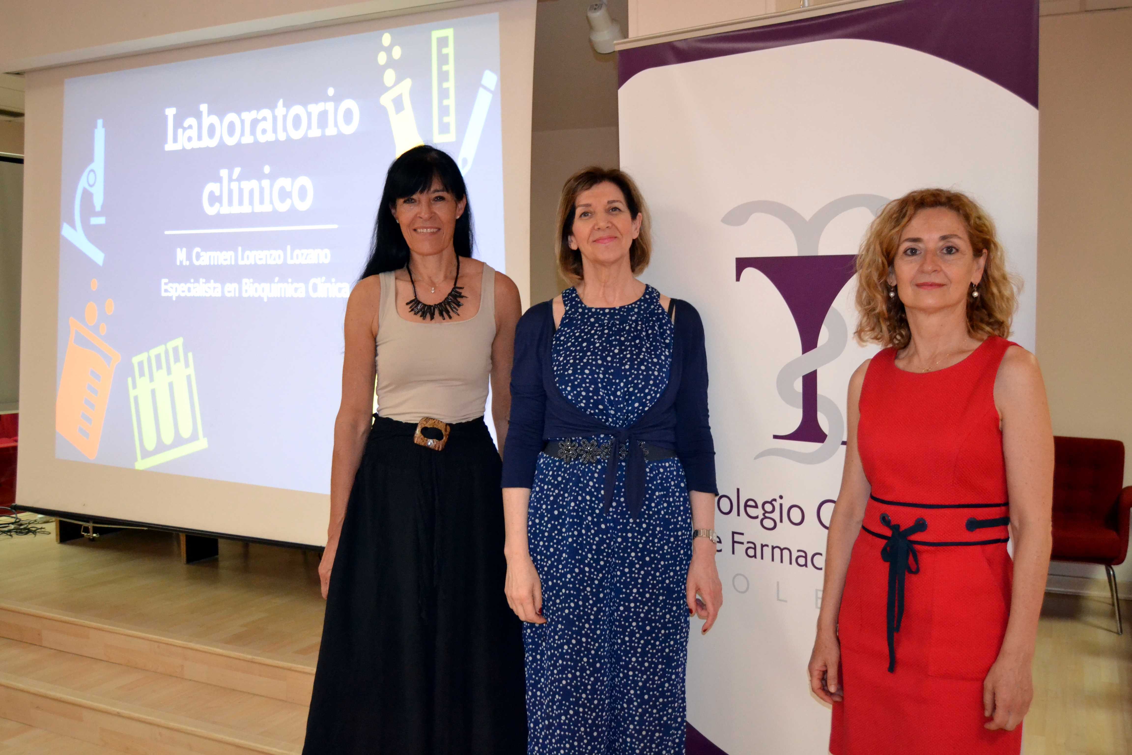 La primera charla la impartió Matilde Chafer, especialista en Análisis Clínicos, Bioquímica Clínica del Laboratorio de Análisis del Hospital General Universitario de Toledo, a la que presentó la secretaria del COF de Toledo y vocal de Análisis, María Jesús García Cañadilla, a la que siguió la intervención de María Francisca Calafell, facultativa en el Laboratorio de Urgencias del Hospital Universitario de Toledo.